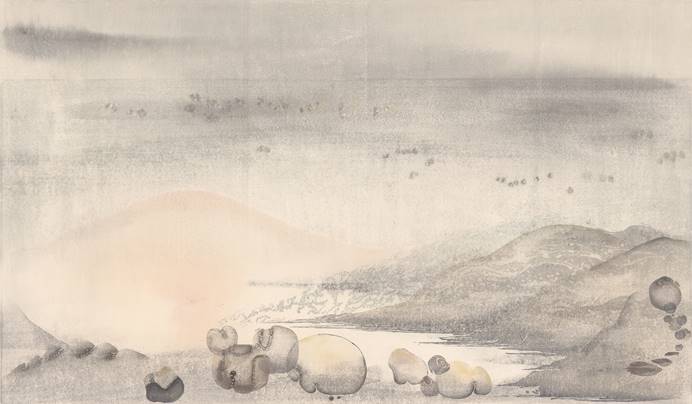 作者王霄《略帶表情的風景之人型石》 75*45cm 木板水印 2014年