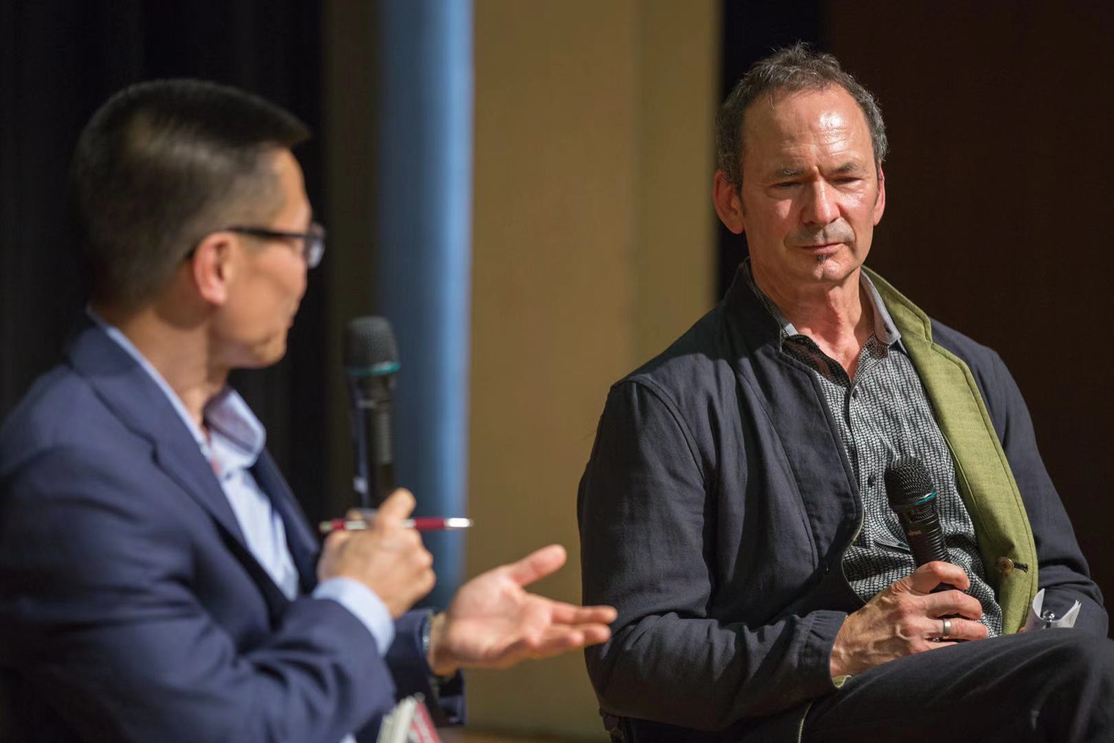 由于活動安排在北京時間晚七點半,弗羅斯特·甘德為克服時差特意起了個大早。他首先回憶起創(chuàng)作《相伴》的緣由。2016年1月,甘德的妻子去世,這讓他悲痛不已。兩人共同生活35年,妻子的離去讓甘德突然不知道自己是誰,有長達一年多的時間沒法寫作。