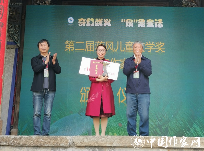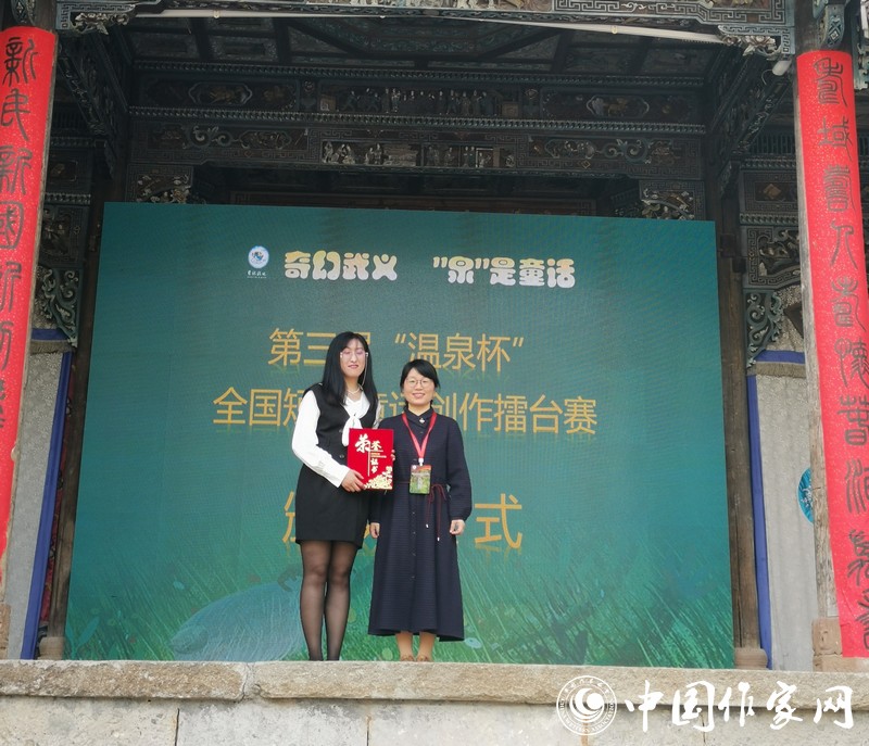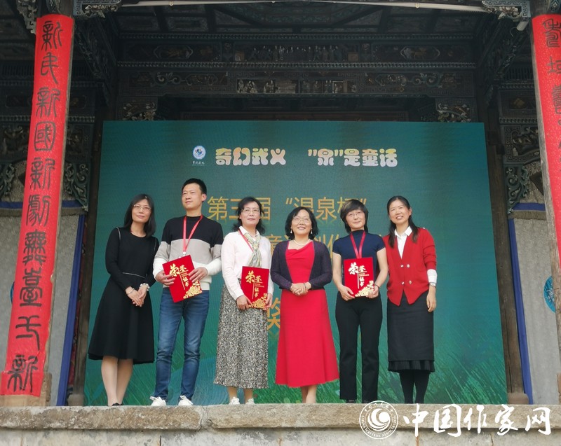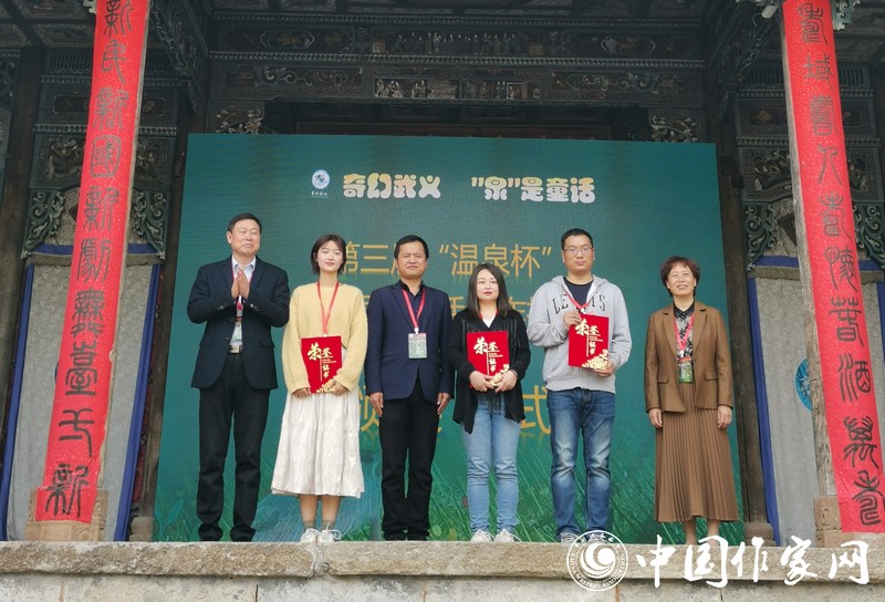 第三屆“溫泉杯”全國(guó)短篇童話擂臺(tái)賽頒獎(jiǎng)儀式,楊華、余今、賈穎榮獲銀獎(jiǎng)。