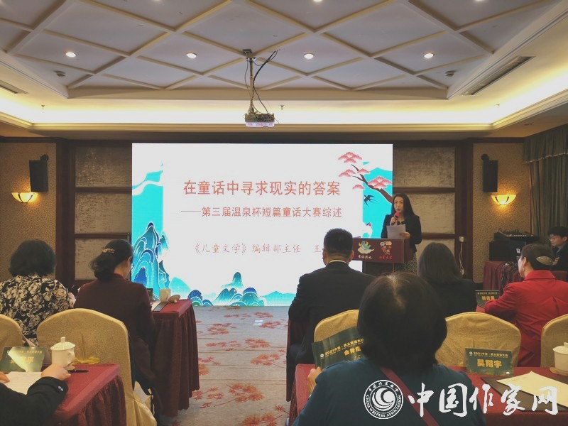 第三屆新時(shí)代中國(guó)原創(chuàng)童話論壇上,主持人王蘇介紹了第三屆《兒童文學(xué)》“溫泉杯”全國(guó)童話擂臺(tái)賽的相關(guān)情況。