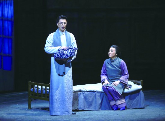 作品選擇葛健豪傳奇一生作為主線時(shí),將重點(diǎn)放在了人物奇與剛的建設(shè)上。奇說的是經(jīng)歷,剛指向的是性格。兩者的結(jié)合構(gòu)成人物與眾不同的戲劇行為?!皵y兒帶女千里行,來到上海尋夫君?!贝竽焕_,從湖南老家千里迢迢趕來上海尋夫的葛健豪,看到屋內(nèi)游手好閑、吸食鴉片、金屋藏嬌的丈夫時(shí),異常憤怒,忍無可忍,羞憤之下,毅然休夫。在夫?yàn)槠蘧V、出嫁從夫的上世紀(jì)之初,這一舉動(dòng)無異于一聲驚雷在亂世炸響。緊接著又有一串驚雷響起,回鄉(xiāng)之后,當(dāng)丈夫以500塊大洋將13歲的小女兒蔡暢賣給老翁時(shí),她決然帶著孩子遠(yuǎn)走長(zhǎng)沙,并將兒女送進(jìn)學(xué)堂,自己也以50歲年紀(jì)報(bào)名上學(xué),當(dāng)眾改名葛健豪,立誓要健壯豪放。學(xué)校拒絕接收時(shí)她毫不退縮,最終被破格與兒孫三代一起同窗就學(xué)。“死里逃生到此地,誓做一回大寫的人”。葛健豪當(dāng)時(shí)的入學(xué),打破了全國(guó)所有學(xué)堂的先例,無任何一個(gè)女人如她這般奇崛。《母親》對(duì)葛健豪性格和經(jīng)歷的構(gòu)建,簡(jiǎn)潔明快、峰回路轉(zhuǎn)。她堅(jiān)毅果敢、自立自強(qiáng),敢于向命運(yùn)挑戰(zhàn)的性格和勇氣,在休夫、入學(xué)兩場(chǎng)戲中,被營(yíng)造得充滿戲劇意味,成為令人印象深刻的戲劇瞬間。