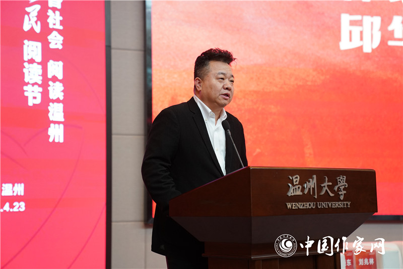 4月23日下午,由中國(guó)作協(xié)主辦的“品閱文學(xué) 溫故知新”全民閱讀主題論壇在溫州大學(xué)舉辦,中國(guó)作協(xié)書記處書記邱華棟出席論壇并發(fā)表主題演講,中共溫州市委常委、宣傳部部長(zhǎng)胡劍謹(jǐn)、溫州大學(xué)黨委書記謝樹華出席論壇并致辭,中國(guó)作協(xié)社聯(lián)部二級(jí)巡視員豐玉波,浙江省作協(xié)黨組成員、秘書長(zhǎng)晉杜娟、中共溫州市委宣傳部副部長(zhǎng)市新聞出版局局長(zhǎng)梅陽等出席論壇,作家劉兆林、王久辛、肖克凡、徐則臣、鐘求是與溫州大學(xué)人文學(xué)院院長(zhǎng)孫良好圍繞“品閱文學(xué) 溫故知新”全民閱讀主題參與論壇討論,中國(guó)作協(xié)部分團(tuán)體會(huì)員單位代表、主管社團(tuán)代表、溫州市作協(xié)、溫州市網(wǎng)絡(luò)作協(xié)人員以及溫州大學(xué)師生和讀者代表參加了論壇。論壇由中國(guó)作協(xié)社聯(lián)部副主任李曉東主持。