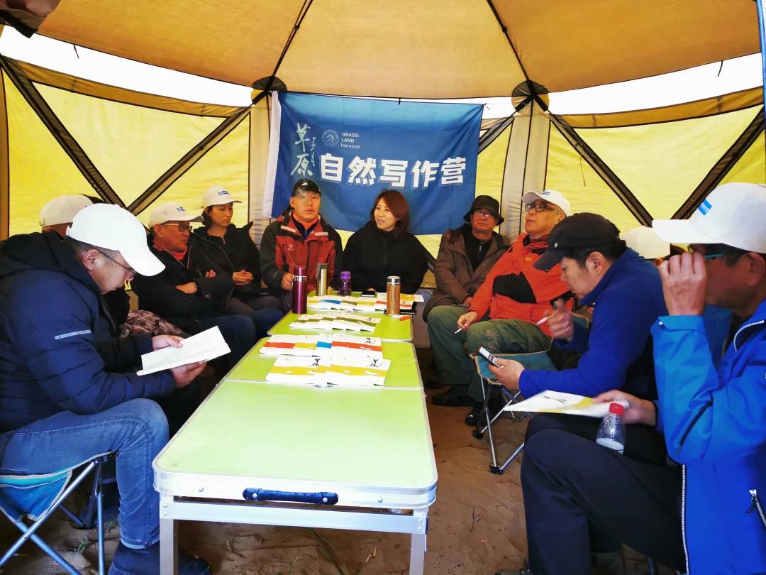 4月25日上午,作家們在《草原》自然寫作營營旗上簽名,并舉行了營旗交接儀式。烏蘭布和營地為《草原》自然寫作營第一站,今后,《草原》還將繼續(xù)組織作家深入到各盟市的自然景觀中去,切身感受自然,與自然傾情對話,創(chuàng)作一批自然文學(xué)作品,在《草原》“自然寫作”欄目的子欄目——“自然寫作營小輯”中呈現(xiàn)。