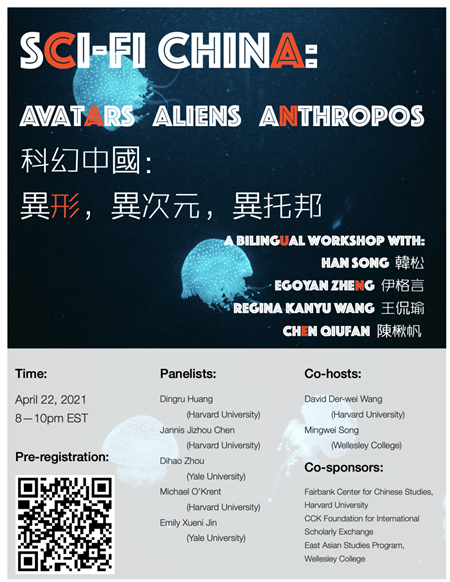 2021年4月23日,由哈佛大學(xué)費(fèi)正清中國(guó)研究中心和韋爾斯利學(xué)院東亞研究系聯(lián)合推出的科幻中國(guó)工作坊在線上成功舉行。本次工作坊主題為“科幻中國(guó):異形,異次元,異托邦”,由哈佛大學(xué)的王德威教授和韋爾斯利學(xué)院的宋明煒副教授主持,邀請(qǐng)韓松、陳楸帆、伊格言和王侃瑜等四位科幻作家及黃丁如、周迪灝、陳濟(jì)舟、歐慕康(Michael O'Krent)和金雪妮等五位青年科幻學(xué)者參加,圍繞主題進(jìn)行發(fā)言和討論。共有兩百余名觀眾參與本次活動(dòng)。
