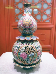 粉彩鏤空花卉紋葫蘆式轉心瓶