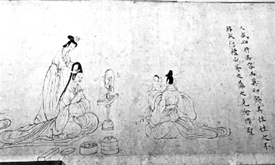 唐朝侯莫陳邈(侯莫陳為復(fù)姓)之妻鄭氏著《女孝經(jīng)》十八章,以為女德楷模。此卷描繪《女孝經(jīng)》前九章內(nèi)容。每章之后,有楷書錄文。