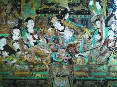 莫高窟112窟(中唐)反彈琵琶伎樂飛天與坐部伎