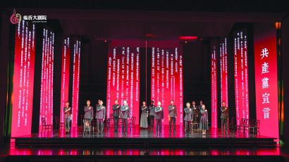 該劇以葉永烈長篇紀實作品《紅色的起點:中國共產黨誕生紀實》為創(chuàng)作藍本,由中國國家話劇院院長、知名導演與編劇田沁鑫掛帥,融合讀誦、詩歌、多媒體等多種表現(xiàn)形式,創(chuàng)新展現(xiàn)了中國共產黨在上海的誕生、發(fā)展及壯大的歷史過程。“沒想到歷史劇也可以這么時尚” “僅靠簡單的幾張桌椅,加上演員干脆利落的演出,輕松地就能讓人記住這些歷史時刻”……其 “青春、熱烈、當代、先鋒”的氣質被90后、00后們評價為一堂生動的戲劇黨課。