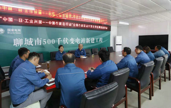 在此次實踐活動中,姜鐵軍深入山東省電力公司聊城南500千伏變電站進行采風采訪。聊城南500千伏變電站是山東省電力公司向建黨100周年獻禮電力工程項目,也是“十四五”山東省第一個建設的500千伏變電站。通過座談交流、現場采風采訪等方式,姜鐵軍用生動的筆觸展現電力工人的辛勞與風采。他在此次創(chuàng)作的紀實散文《送變電人的勞動節(jié)》中寫道:“站在已經安裝好各種變壓設備的場地里,我仿佛又看到了熱火朝天的打樁場面,猶如一場沒有硝煙的激戰(zhàn),送變電人就是沖鋒陷陣的戰(zhàn)士。這些忘我勞動的送變電人,這些擔責奮進的送變電人,這些爭分奪秒的送變電人,在這塊土地上寫下他們的風采!”