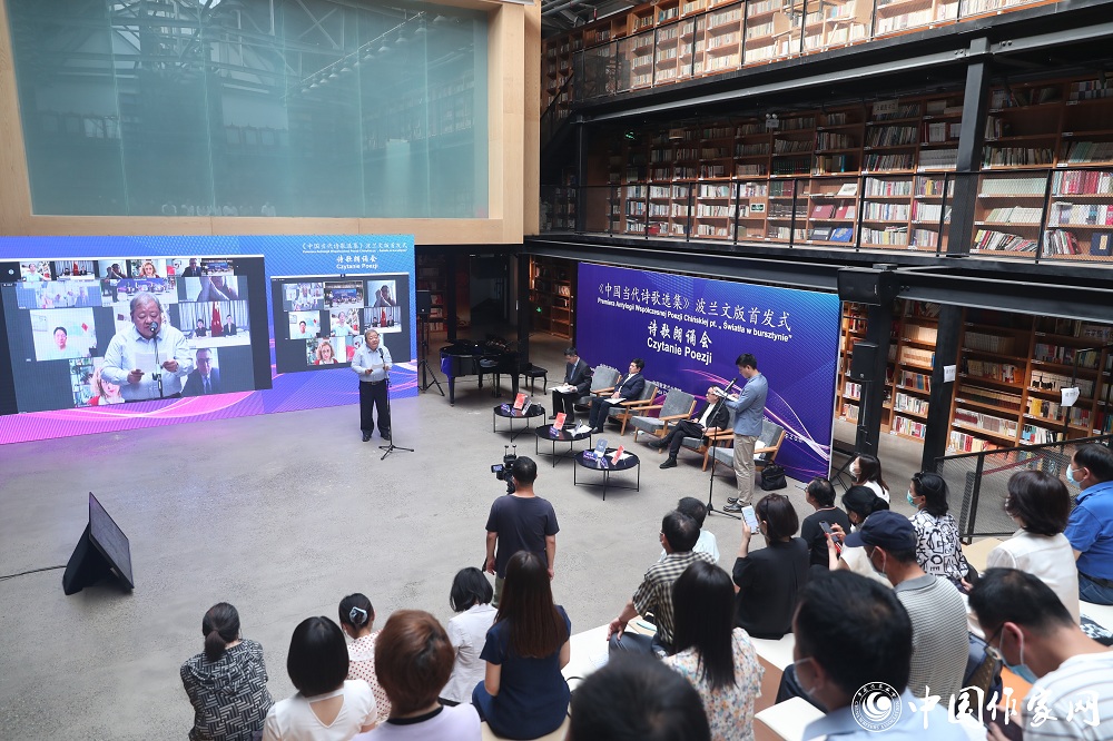 5月18日下午,由中國(guó)作家協(xié)會(huì)、中國(guó)駐波蘭大使館、波蘭對(duì)話出版社共同主辦的《中國(guó)當(dāng)代詩(shī)歌選集》波蘭文版首發(fā)式暨詩(shī)歌朗誦會(huì)在北京紅樓公共藏書(shū)樓以線上線下結(jié)合的方式舉行。中國(guó)作協(xié)副主席、書(shū)記處書(shū)記吉狄馬加,中國(guó)駐波蘭大使館文化參贊張中華出席活動(dòng)并致辭。中國(guó)詩(shī)人湯養(yǎng)宗、胡弦、陳先發(fā)、張執(zhí)浩與本書(shū)譯者,波蘭漢學(xué)家、翻譯家李周、卡塔基娜·薩雷克,波蘭對(duì)話出版社總經(jīng)理安德烈·帕西米斯等通過(guò)視頻連線方式共襄詩(shī)歌盛會(huì)。朗誦會(huì)由中國(guó)作協(xié)外聯(lián)部負(fù)責(zé)人張洪斌主持。