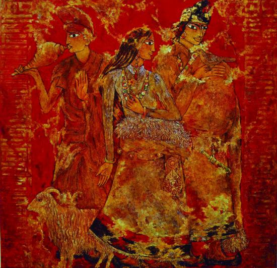 于是從上世紀80年代末至90年代初,我“三進”西藏體驗生活。期間對中國壁畫、中國畫、民間繪畫、中西方文化的差異等各方面都做了很多梳理學習工作。在西藏寫生的過程中及回來之后的美術創(chuàng)作中,我一直沒有停止過思考,同時也更加深刻地感受到,藝術創(chuàng)作要想真正找到一條適合自己的表現(xiàn)方法和道路是非常困難的,這個過程中要做各種嘗試,更多的時候是失敗。尋找的過程是曲折的,只有在不斷的失敗與嘗試中才可能慢慢形成適合自己的表現(xiàn)手法,然后再慢慢走向成熟。在此過程中我也認識到,中國的美術創(chuàng)作要走出一條自己的道路,美術家就要在民族性、時代性和個性這三性的體現(xiàn)與結合中去尋找。體現(xiàn)民族性需要研究歷史,體現(xiàn)時代性就要把握時代特色以及掌握當下技術技巧的創(chuàng)新。同時,老一輩美術家的創(chuàng)作實踐也給了我很大啟發(fā)。如徐悲鴻《愚公移山》中對民間神話元素的表現(xiàn);董希文在西藏用“中國線條”創(chuàng)作的很多人物寫生與風景畫;又如趙無極、朱德群等藝術家對中國宋代繪畫的解構,對東方意境的表現(xiàn);再如吳冠中作品中大量的留白與點線面的極致提煉,對勾線填色技法的運用等。他們的創(chuàng)作對西方油畫藝術進行創(chuàng)新改造,把更多的中國元素融入作品中形成自己獨特的風格,使自己的繪畫跟世界各國的畫家拉開了一定距離。在這些前輩畫家的啟發(fā)和個人努力下,畫出了1989年獲獎的《天長地久》等一系列作品,并隨著對中國傳統(tǒng)文化的深度探索與學習,使通過中國文化的內涵來表現(xiàn)中國人精神的意識貫徹得更加徹底了。