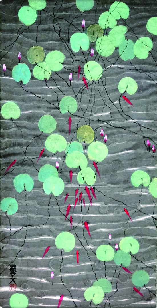 周藝文的藝術(shù),在美的沉思之下,有復雜的歷史經(jīng)驗。他并不直接傾吐歷史,沉郁也只是藏于畫面之下,他并不畫痛苦,痛苦化成了輕盈的山水,生命體驗化成了枯荷,愛化成了一尾游魚。借山水與神靈,周藝文讓畫自己開口說話。