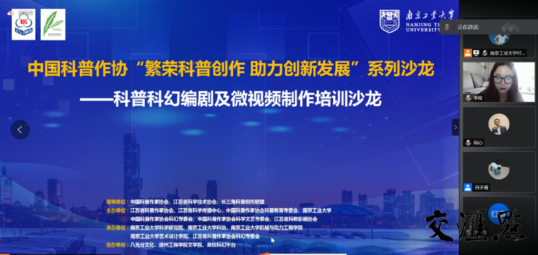 5月22日,由中國(guó)科普作協(xié)、江蘇省科協(xié)、長(zhǎng)三角科普創(chuàng)作聯(lián)盟聯(lián)合指導(dǎo),江蘇省科普作協(xié)、江蘇省科學(xué)傳播中心、江蘇省科教影視協(xié)會(huì)、南京工業(yè)大學(xué)主辦的“繁榮科普創(chuàng)作、助推創(chuàng)新發(fā)展”之科普科幻編劇及微視頻制作培訓(xùn)沙龍?jiān)谀暇┕I(yè)大學(xué)舉行。