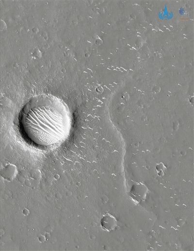 國家航天局公布的天問一號探測器拍攝的高清火星影像圖。新華社發(fā)(國家航天局供圖)