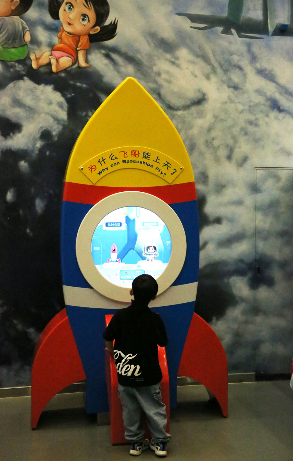 2021年5月19日,小朋友在中國科學(xué)技術(shù)館體驗科普設(shè)備,了解飛船上天過程。新華網(wǎng)發(fā)(劉廣生 攝于北京)