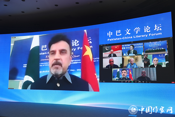 胡邦勝說(shuō),友誼是中巴民心相通、彼此親近的關(guān)鍵詞,這種高水平的關(guān)系是中巴幾代領(lǐng)導(dǎo)人精心培育的結(jié)果,歷經(jīng)70年風(fēng)雨,深深扎根在兩國(guó)成千上萬(wàn)的普通民眾心中。新冠疫情加速了世界大變局的演進(jìn),在變化與危機(jī)疊加的時(shí)候,我們更加感受到友誼的寶貴。期待兩國(guó)作家擁抱中巴人民火熱的生活,書寫兩國(guó)人民的精彩故事,讓兩國(guó)人民通過(guò)文學(xué)加深了解、增進(jìn)友好感情。我們希望與巴基斯坦文學(xué)院共同努力,將中巴文學(xué)論壇建設(shè)成為雙邊文學(xué)交流的固定機(jī)制,為兩國(guó)作家深入交換意見(jiàn)、分享創(chuàng)作經(jīng)驗(yàn)提供一個(gè)新的平臺(tái),推動(dòng)兩國(guó)文學(xué)互鑒互賞,為中巴全天候友誼書寫嶄新的篇章。