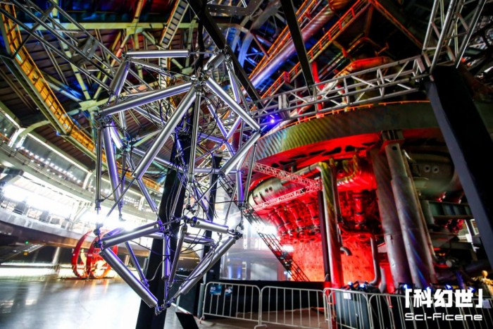本次“科幻世”科技藝術(shù)概念展圍繞著“創(chuàng)新科幻、智享未來”的理念,充分利用首鋼工業(yè)遺產(chǎn)的空間特色,用科學(xué)與藝術(shù)結(jié)合的創(chuàng)意,打造了一個面向公眾未來體驗的科幻主題樂園,一場基于沉浸式媒體敘事的科幻系列展覽,一次探索技術(shù)美學(xué)邊界的科幻視聽盛宴。