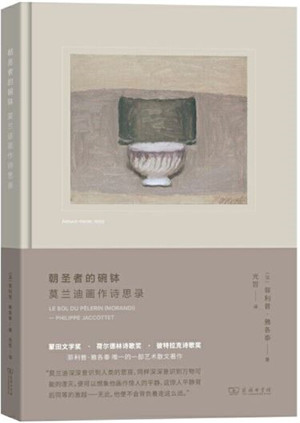 2020年12月6日,《喬治?莫蘭迪:桌子上的風(fēng)景》在北京木木美術(shù)館開展,這個跨年大展吸引了眾多觀眾前往觀看。通常在展覽尾聲,觀眾會按照指引步上一段階梯來到展館頂層,這里還原了部分莫蘭迪畫室的環(huán)境,如果足夠細(xì)心,會在并不十分醒目的書桌一角發(fā)現(xiàn)一本薄薄的小書,淡淡的米黃色封面上端,中間位置印制了一幅莫蘭迪1959年的畫作,主體是一盞靜置的碗缽,畫面籠罩在安靜祥和的光線中,長時間地吸引著因緣際會捧起這本小書的人,駐足,接通一段安定沉靜的時光,心無旁騖地觀看。書作者是瑞士詩人菲利普?雅各泰,這位影響廣泛的法語詩人剛剛?cè)ナ?,這部由“紙上造物”工作室出品、商務(wù)印書館出版的《朝圣者的碗缽:莫蘭迪畫作詩思錄》,是他唯一一部藝術(shù)散文著作。