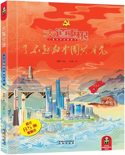 在全國(guó)上下扎實(shí)開(kāi)展黨史學(xué)習(xí)教育的關(guān)鍵時(shí)刻,未來(lái)出版社出版了繪本《大道無(wú)垠——了不起的中國(guó)共產(chǎn)黨》,這是一本專門寫給新時(shí)代中國(guó)少年兒童的優(yōu)秀圖書。該書符合少年兒童的閱讀習(xí)慣,以圖文結(jié)合、手繪翻閱的形式,散文詩(shī)化的語(yǔ)言,展現(xiàn)了中國(guó)共產(chǎn)黨輝煌的百年歷史進(jìn)程。全書分為八個(gè)章節(jié):中國(guó)共產(chǎn)黨的誕生,遵義會(huì)議和紅軍長(zhǎng)征的勝利,戰(zhàn)火烽煙里的中流砥柱,中國(guó)人民站起來(lái)了,屹立在世界東方,改革開(kāi)放鑄就民族輝煌,走向偉大復(fù)興的新時(shí)代,繼往開(kāi)來(lái)、飛向明天。