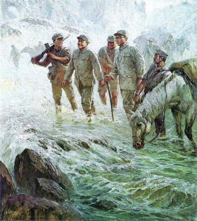 激流——?jiǎng)⑧嚧筌娡M(jìn)大別山(油畫(huà)·局部) 鮑加