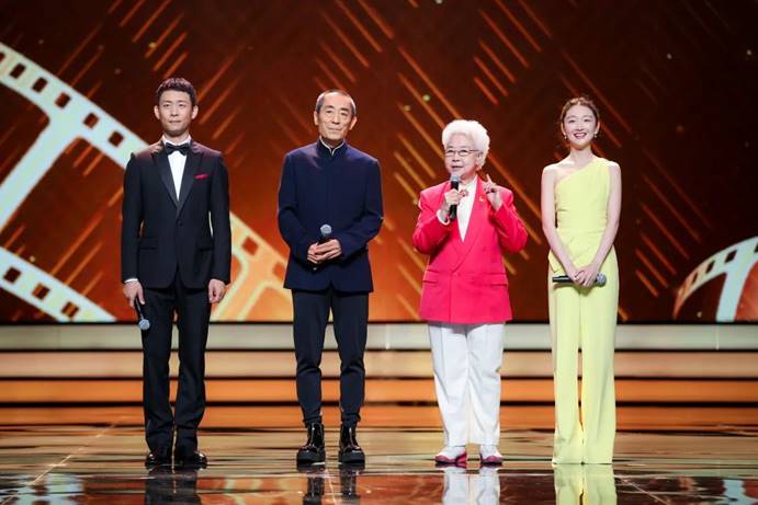 金爵盛典上,電影表演藝術(shù)家田華、導(dǎo)演張藝謀、演員張譯、周冬雨,以《我們的時(shí)代》為題,講述了他們與電影的不解之緣,“雖然我們年齡上,經(jīng)歷上,差了很多,但作為電影人,我們的心愿是一樣的——拍出更多的好電影,不辜負(fù)觀眾的厚愛,致敬偉大的時(shí)代!”