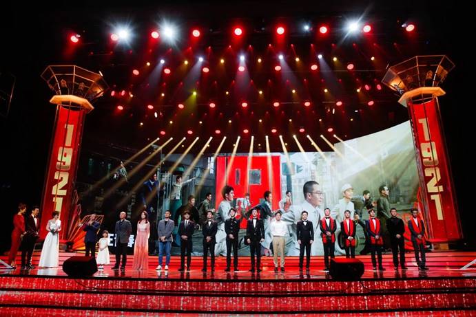 金爵盛典之后,現(xiàn)場(chǎng)觀眾與嘉賓共同欣賞了開幕影片《1921》。影片以“南陳北李”相約建黨開篇,“南陳北李”遞出的革命火種,被信仰馬克思主義的“新青年”們徹底點(diǎn)燃。他們共同奔赴一個(gè)路途不乏坎坷,但前途無比光明的“新生”的中國(guó)。影片聚焦了黨的一大在上海又轉(zhuǎn)場(chǎng)嘉興南湖秘密召開的時(shí)間節(jié)點(diǎn)。重現(xiàn)了中國(guó)共產(chǎn)黨第一次全國(guó)代表大會(huì)召開這一波瀾壯闊的歷史時(shí)刻,敘事重心是一大代表充滿朝氣的青春面貌和為理想奮斗的家國(guó)情懷?!斑@也是在大銀幕上,第一次可以讓觀眾真正走進(jìn)當(dāng)時(shí)這些建黨的年輕人們的生活和精神世界。之前《建黨偉業(yè)》等片關(guān)于中國(guó)共產(chǎn)黨‘一大’的召開和這些代表們的描摹,都因篇幅有限,還從未充分展現(xiàn)過細(xì)節(jié)。”該片導(dǎo)演黃建新如是說。青年演員黃軒、袁文康、祖峰、竇驍、王仁君、張頌文、劉家祎、王俊凱、韓東君、劉昊然、張超、張?jiān)讫?、胡先煦在片中分別飾演13位一大代表。