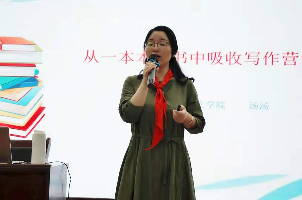 湯湯為碑林區(qū)實驗小學(xué)學(xué)生分享如何“從一本本好書中吸收寫作營養(yǎng)”