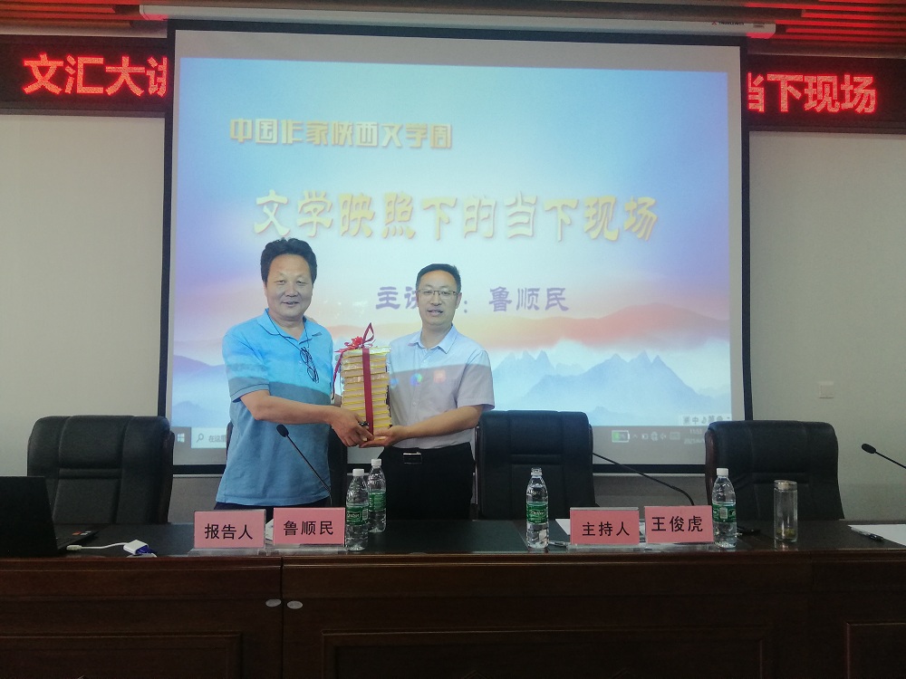 魯順民向延安大學(xué)贈送圖書,并為師生們解讀“文學(xué)映照下的當下現(xiàn)場”