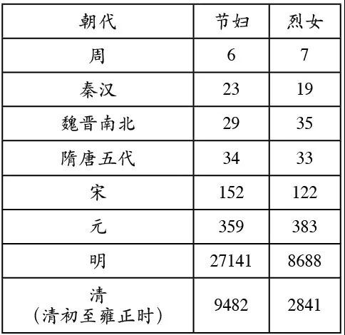 東周至清前期節(jié)婦、烈女數(shù)量變化表