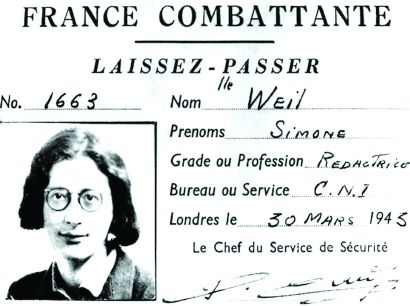 納粹占領(lǐng)期間,薇依參加抵抗運(yùn)動時(shí)的通行證