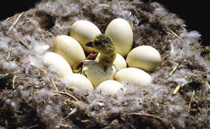 2001年5月,在青海湖鳥島潛伏的葛玉修,發(fā)現(xiàn)一個鳥巢的9個蛋中,有個蛋裂開了一個小洞,里邊還傳出“嘰嘰”聲?!半r雁即將出殼”,想到這里,葛玉修悄然隱蔽地趴在雁巢附近,忍著烈日的蒸烤和撲鼻的鳥糞臭,耐心等待4個多小時,終于拍到雛雁出殼的全過程。而后,他又陸續(xù)拍到雛雁學步、涉水的鏡頭,最終形成組照《生命禮贊》,作品在黃河流域九?。▍^(qū))藝術(shù)攝影展中獲得金獎。