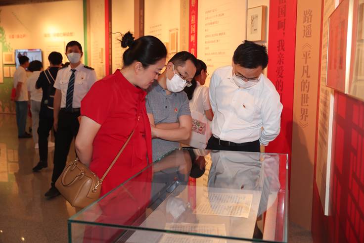 開幕式后,鐵凝、錢小芊和參加開幕式的所有人員步入展廳參觀展覽。展覽的第一部分是“1921年·時代的聲音”,魯迅的《故鄉(xiāng)》、郭沫若的《女神》、郁達夫的《沉淪》等作品展現(xiàn)了五四那一代作家對時代與現(xiàn)實的敏銳把握。隨后,“左聯(lián)五烈士”的散文和詩作、方志敏的《可愛的中國》、茅盾的《子夜》、巴金的《家》、艾青的《我愛這土地》、老舍的《四世同堂》等作品的相關(guān)手稿、書籍依次映入眼簾,其中蘊含著青春的熱血與激情,以及作家們對祖國和人民的深厚情感?!饵S河大合唱》《小二黑結(jié)婚》《太陽照在桑干河上》等相關(guān)展品則勾連起解放區(qū)文學(xué)的昂揚基調(diào)。1949年新中國成立,文學(xué)的氣象也隨之翻新,展覽通過胡風、臧克家、何其芳等人的詩作片段,以及關(guān)于第一次文代會的照片等展品展現(xiàn)新中國文學(xué)的新起點。關(guān)于上世紀五六十年代的文學(xué),展覽展出了《紅巖》《紅日》《紅旗譜》《創(chuàng)業(yè)史》《青春之歌》《保衛(wèi)延安》《乘風破浪》等長篇小說和魏巍的散文《誰是最可愛的人》、賀敬之的詩歌《雷鋒之歌》等作品,一本本珍貴的初版書和一頁頁帶著靈韻的作家手稿彰顯著紅色經(jīng)典的魅力。展覽以徐遲、周克芹、路遙和王蒙、蔣子龍、張潔、舒婷等作家的作品為例,展現(xiàn)了新時期文學(xué)與時代同頻共振的特質(zhì)?!靶聲r代 新征程”板塊則以視頻的形式聚焦“百年路新征程詩歌創(chuàng)作工程”的成果,以及作家、詩人們對于新時代文學(xué)的展望。