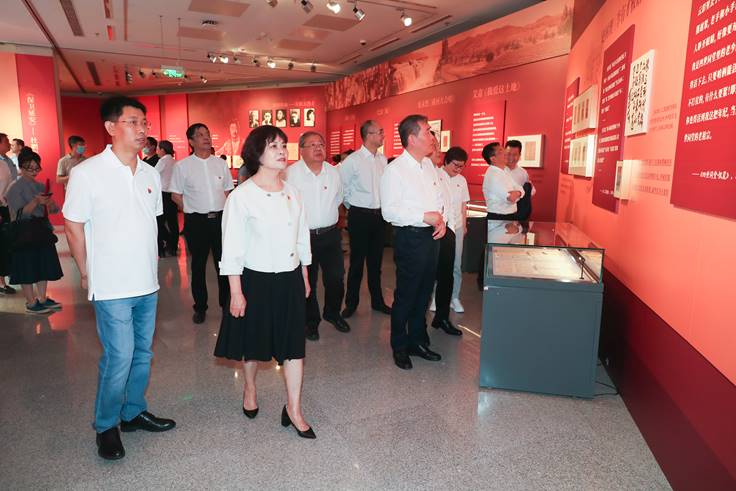 “迎著新生的太陽——慶祝中國共產(chǎn)黨成立100周年紅色經(jīng)典大展”開幕式現(xiàn)場