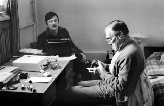 1980年,安德烈·塔可夫斯基拜訪父親并拍照合影