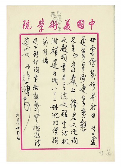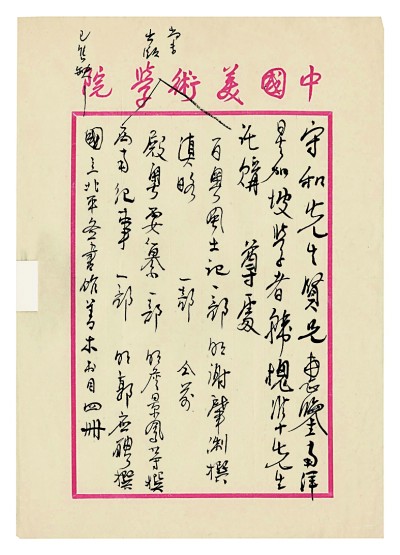 袁同禮(1895—1965),字守和,主持北平圖書館(今中國國家圖書館)工作22年,奠定了中國現(xiàn)代圖書館的基礎(chǔ),推動了我國圖書館事業(yè)的發(fā)展,特別是抗戰(zhàn)時期,他廣泛尋求文化合作互助,為中國學(xué)術(shù)文化事業(yè)、文化抗戰(zhàn)及與世界的文化交流作出了積極貢獻。該信展示了徐悲鴻與袁同禮之間關(guān)于購書等事的交往。