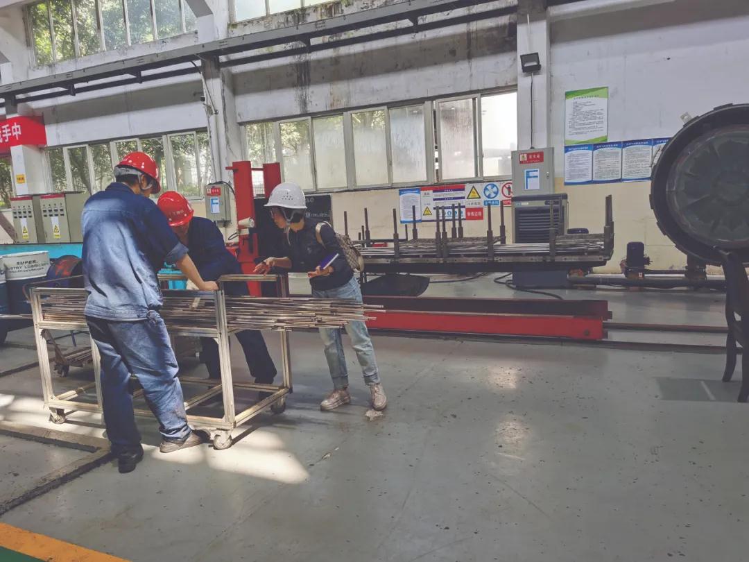 2021年“五一”長假期間,經(jīng)過連續(xù)兩周陰雨天氣后,重慶氣溫一夜之隔就驟升10多攝氏度。陽光火烈烈地?fù)湎蚪哟蟮?,屋?nèi)更加地悶熱難耐。位于大渡口建橋工業(yè)園區(qū)的重慶鋼鐵研究所有限公司(以下簡稱:重慶鋼研公司)管材事業(yè)部生產(chǎn)車間正在加班加點趕合同。經(jīng)過前期的努力,蹇義群、何妮蔓她們手里的這批航空管產(chǎn)品已經(jīng)制作了6個道次,現(xiàn)正進(jìn)入精整階段。