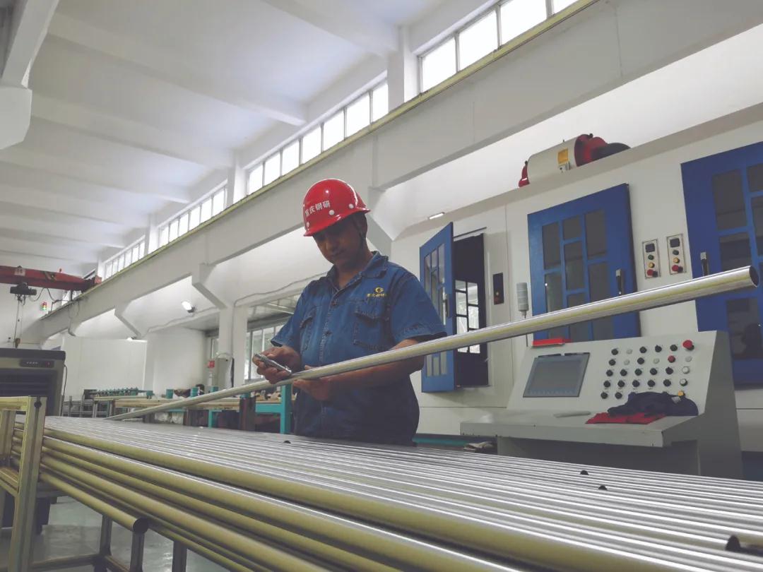 蹇義群不禁仰起頭,驕傲地活動了一下有些酸軟的脖子。就在她身后,長約500米的精密管材生產(chǎn)線上,10余名技術(shù)工人有條不紊地協(xié)作加工。他們生產(chǎn)的這批精密管材,將被用于國產(chǎn)某新型飛機(jī)發(fā)動機(jī)核心部位。