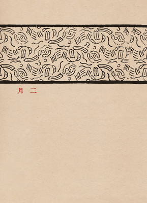 陶元慶(1893-1929),字璇卿,浙江紹興人。師從豐子愷和陳抱一等名家習西洋畫,國畫等亦有涉獵,為其從事書籍裝幀藝術(shù)奠定了美學基礎。魯迅的《苦悶的象征》《彷徨》《故鄉(xiāng)》等作品封面皆出自陶氏之手,與豐子愷、錢君匋并稱為中國現(xiàn)代書籍裝幀的三大家。1929年8月6日,陶元慶因病去世。故柔石《二月》封面成了陶氏遺作?!抖隆返姆饷?,陶元慶用上下兩段橫線,簡練地概括了畫面的空間,黑色線條勾勒出諸多人物的相貌,在類似河流中顛三倒四漂流著,滿幅畫面被緊張的情緒所包圍,將“二月”主題表現(xiàn)得恰到好處,又耐人尋味。畫面富裝飾感而柔弱陰沉,雖屬于西方的風格,但里面卻涵容著一種東方的飄逸的氣韻。