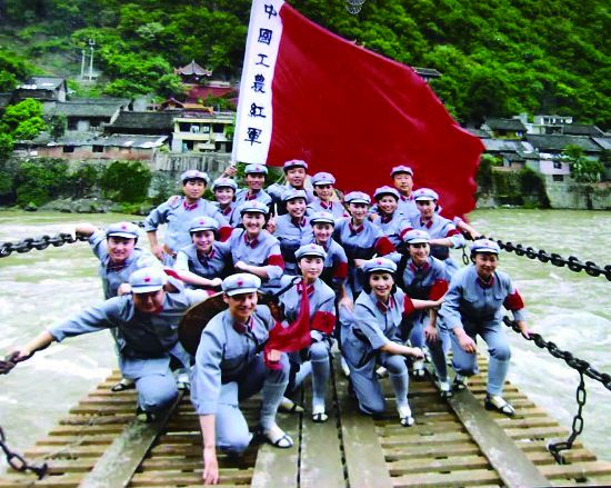 《長征組歌》復(fù)排后原戰(zhàn)友文工團(tuán)部分演職人員于“大渡河”合影