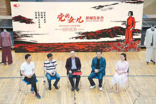 主創(chuàng)團(tuán)隊(duì)介紹《黨的女兒》排練進(jìn)度。 本報(bào)記者 方非攝