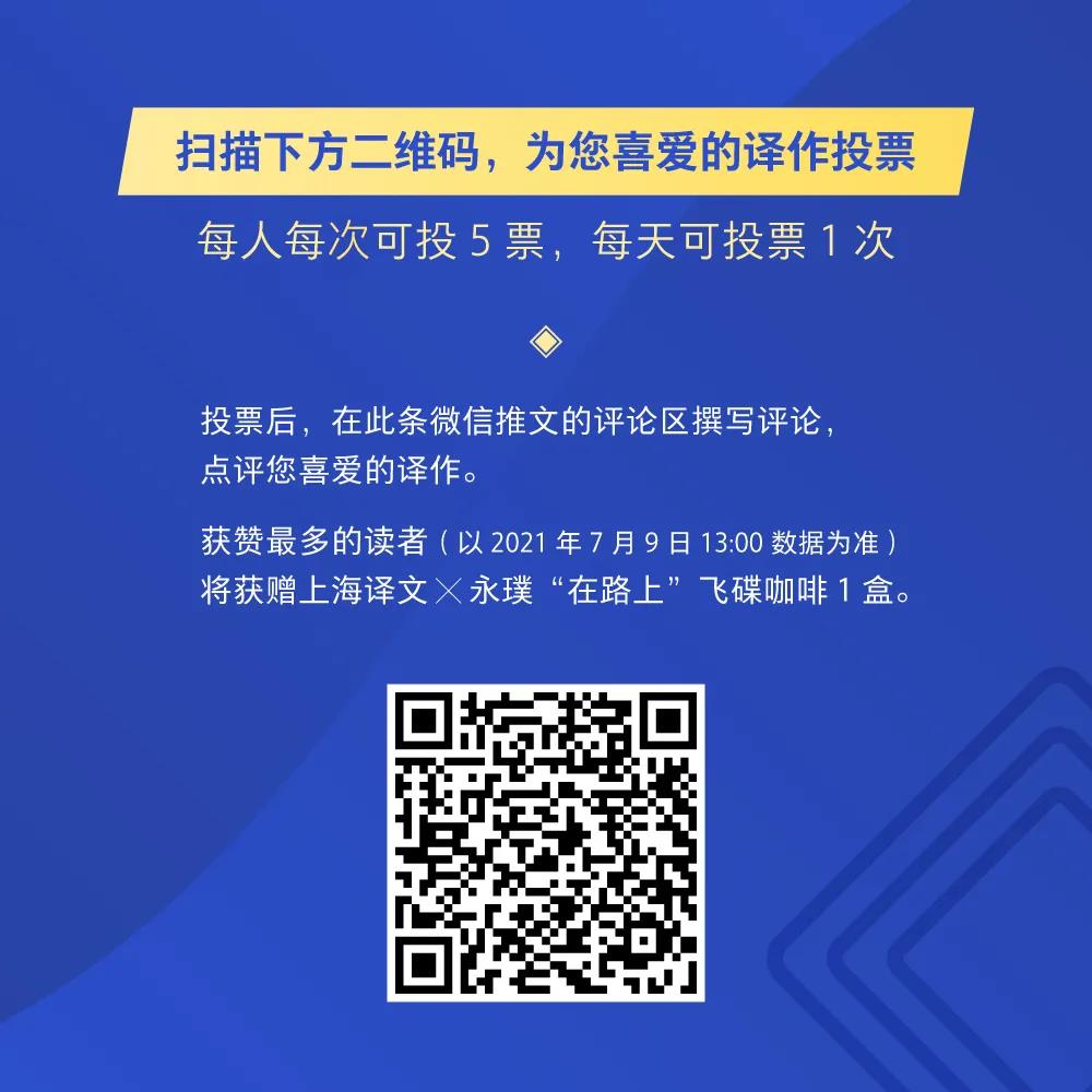 讀者可以掃描下方二維碼,進(jìn)入投票頁(yè)面后,點(diǎn)擊圖書封面,即可看到每部譯作及其譯者的簡(jiǎn)介。