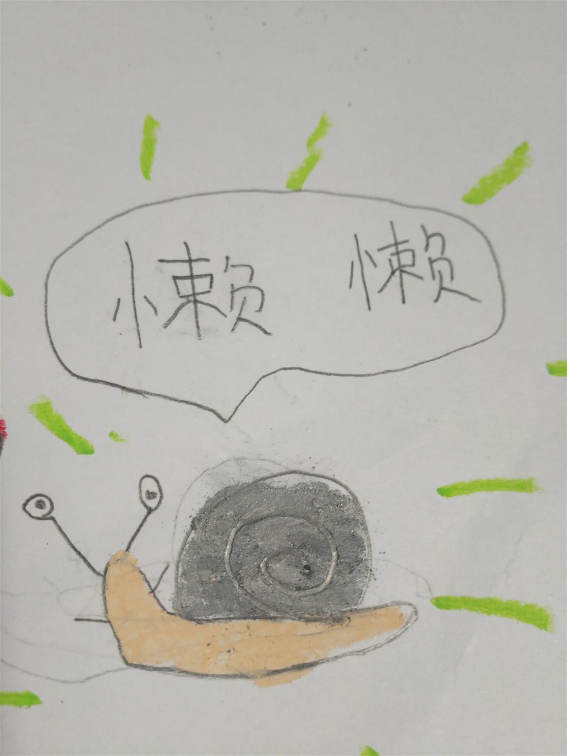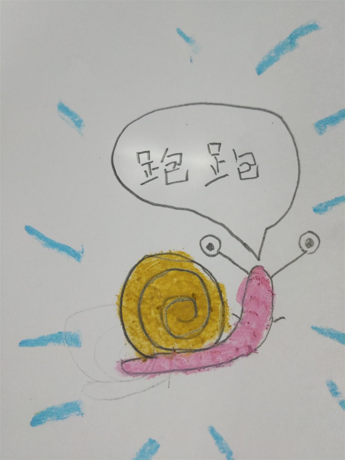 兩個(gè)小蝸牛邊聊邊悄悄地爬到窩窩的邊上,伸著腦袋,看著姐姐做題。“跑跑”把腦袋長(zhǎng)長(zhǎng)地伸著,像是看到了姐姐在做哪道題。