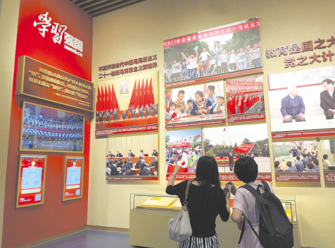 自7月15日向公眾開放預(yù)約后,中國共產(chǎn)黨歷史展覽館每日人流如織。在“‘不忘初心、牢記使命’中國共產(chǎn)黨歷史展覽”展出的2600余幅圖片、3500多件套文物實物中,記者看到了不少動人的讀書故事,更遇到了不少像蔣璐夫婦這樣的愛書人。