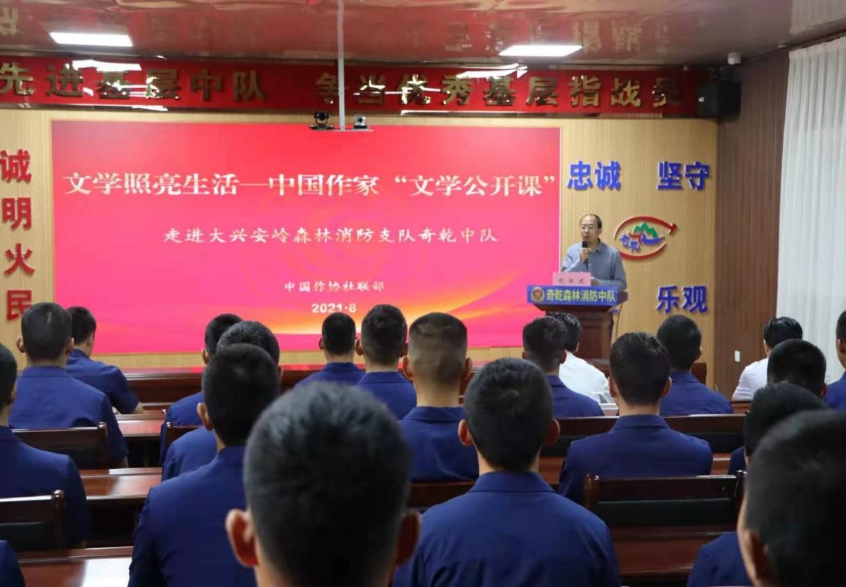 8月2日,由中國作協(xié)社聯(lián)部主辦的文學(xué)照亮生活—中國作家“文學(xué)公開課”在大興安嶺森林消防支隊奇乾中隊舉辦,活動邀請魯迅文學(xué)獎獲得者、著名報告文學(xué)作家紀(jì)紅建為森林消防一線指戰(zhàn)員進(jìn)行專題授課,將文學(xué)之光照進(jìn)茫茫林海。