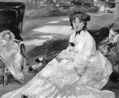其次是所謂“戶外畫法”。其實(shí)最早采用這種畫法的人不是印象派畫家,而是巴比松畫派的畫家,后者以描繪楓丹白露等法國風(fēng)景和鄉(xiāng)村景色而聞名。不過他們在繪畫時(shí)只是在戶外得其大概,之后帶回畫室對作品做進(jìn)一步完善。而印象派畫家才是真正意義上在戶外完成畫作的第一批畫家。1868年前后,莫奈和雷諾阿肩并肩地在一個名叫“蛙塘”的風(fēng)景名勝地創(chuàng)作了第一批帶有較為嚴(yán)格意義上的印象派風(fēng)格的戶外作品。1870年,馬奈在戶外完成了《在花園里》,差不多同一時(shí)期,莫奈也創(chuàng)作了類似題材的作品??傊?874年,莫奈、雷諾阿、畢沙羅、德加、莫里索等人舉辦第一屆印象派畫展時(shí),印象派從孕育到嶄露頭角,早已過去五六年甚至更長時(shí)間了。