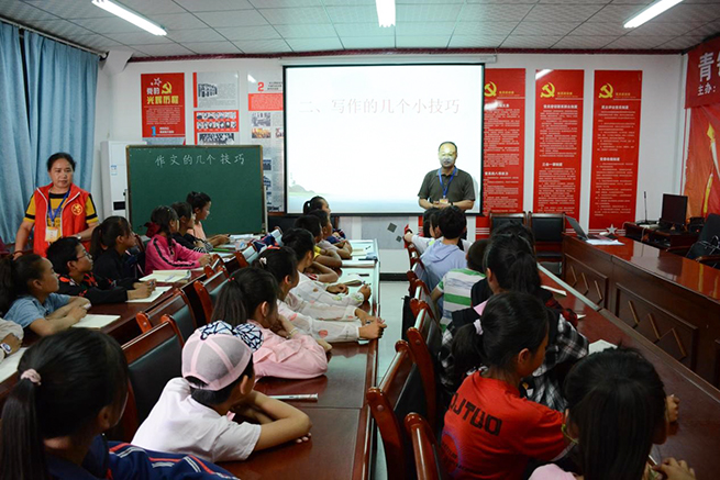 培訓(xùn)班上,主講老師王懷君以“作文寫作技巧”為主題,為學(xué)生上了一堂精彩的作文寫作課。