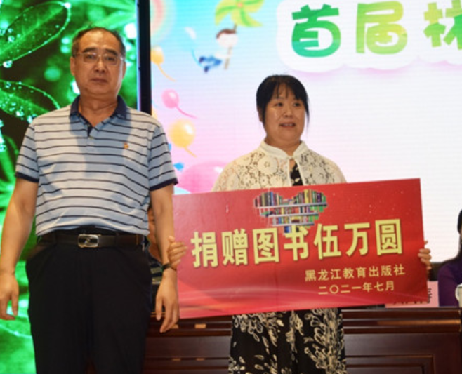 啟動(dòng)儀式上,由黑龍江教育出版社常務(wù)副社長(zhǎng)賈海濤代表出版社,為“王芳童話館”捐贈(zèng)了五萬(wàn)元的圖書(shū)。