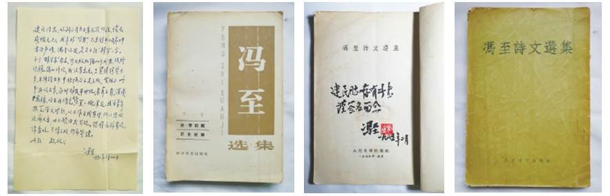 本文作者收藏的馮至先生作品、題字及信函