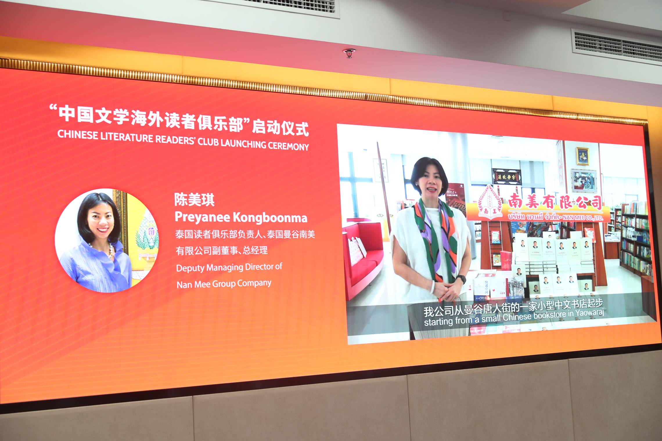 有著72年蓬勃發(fā)展歷史的泰國(guó)南美有限公司,從曼谷唐人街的一家中文書店起步,逐漸發(fā)展為涵蓋圖書出版、中文學(xué)校等在內(nèi)的大型綜合公司。公司總經(jīng)理、泰國(guó)讀者俱樂(lè)部負(fù)責(zé)人陳美琪在視頻發(fā)言中介紹,泰國(guó)南美出版的中國(guó)“四大名著”漫畫版在流暢的泰語(yǔ)譯文外加入精彩的情節(jié)插圖,激發(fā)了泰國(guó)讀者的想象力,加深了他們對(duì)故事的理解。陳美琪還談到,泰國(guó)公主瑪哈·扎克里·詩(shī)琳通公主精通漢語(yǔ),熱愛(ài)中國(guó)文化,翻譯過(guò)包括鐵凝《永遠(yuǎn)有多遠(yuǎn)》、王安憶《小鮑莊》、池莉《她的城》等在內(nèi)的眾多中國(guó)當(dāng)代小說(shuō)佳作。為表彰她對(duì)中國(guó)國(guó)家建設(shè)和發(fā)展、促進(jìn)中外交流合作作出的突出貢獻(xiàn),習(xí)近平主席在新中國(guó)成立70周年之際授予詩(shī)琳通公主“友誼勛章”。通過(guò)詩(shī)琳通公主翻譯的作品,泰國(guó)讀者領(lǐng)略到了現(xiàn)代漢語(yǔ)的魅力,了解到了當(dāng)代中國(guó)人的生活方式,也感悟到了現(xiàn)代中國(guó)的價(jià)值觀念、生活方式和文化傳承。除此之外,中國(guó)兒童和青少年文學(xué)作品也越來(lái)越受到泰國(guó)青年讀者的追捧,作家楊紅櫻的作品尤其受歡迎。陳美琪希望“中國(guó)文學(xué)海外讀者俱樂(lè)部”的各項(xiàng)活動(dòng)取得圓滿成功,為中泰兩國(guó)人民的密切交流與合作搭建橋梁。
