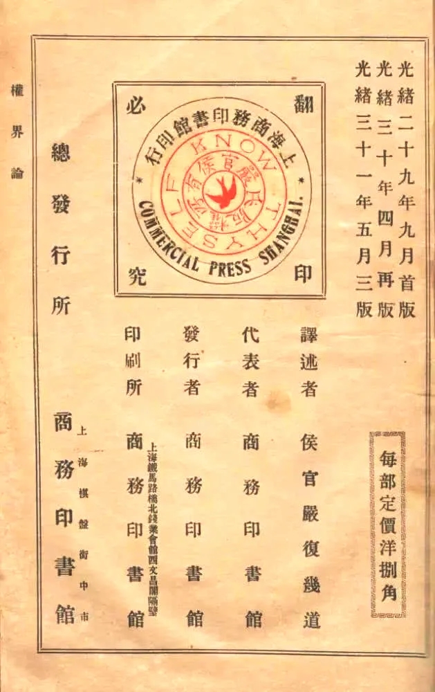 嚴(yán)復(fù)譯:《群己權(quán)界論》上的版權(quán)聲明